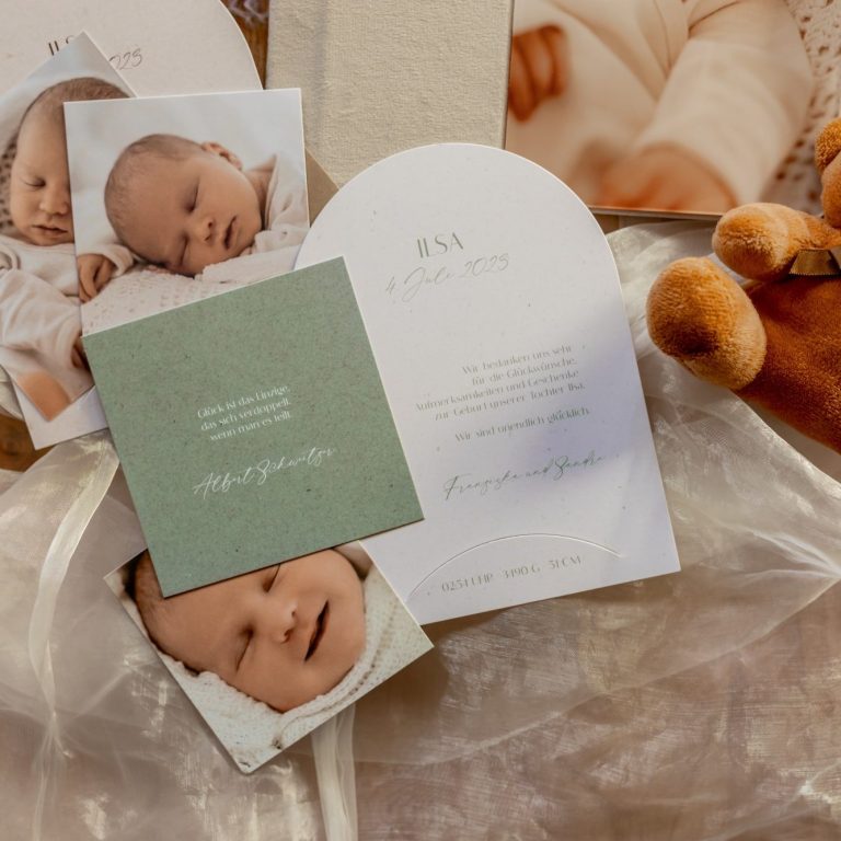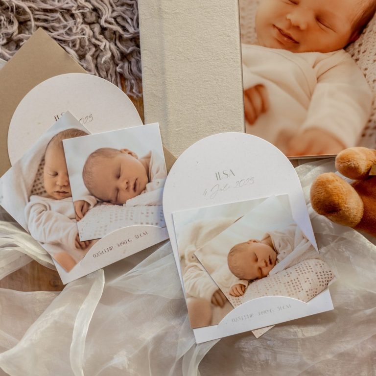 Die Geburtskarten bieten Platz für die drei schönsten Aufnahmen und den Geburtsdaten eures Babys. Sie werden mit individuellem Text auf euch abgestimmt. Ihr könnt zwischen zwei Farbvariationen wählen um euren Verwandten eine schöne Erinnerung zu machen.