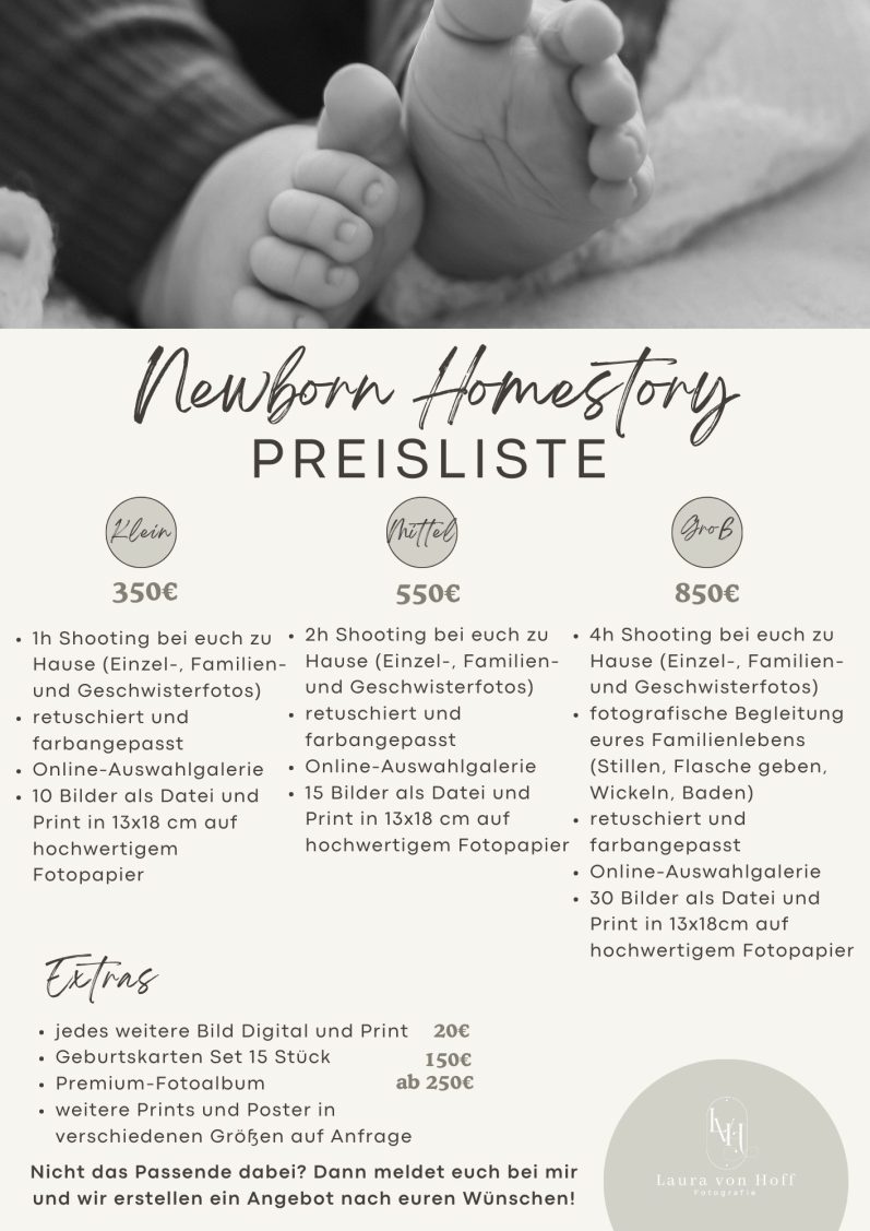 Diese besondere Zeit vergeht oft viel zu schnell. Umso wertvoller ist es, sie in natürlichen und liebevollen Bildern festzuhalten. Ich komme zu Euch nach Hause und begleite Euch in gewohnter Umgebung. Ganz ohne Stress und ohne künstliches Posing. Ich schaffe Raum für Nähe, Ruhe und kleine Alltagsmomente wodurch authentische Aufnahmen entstehen die Euer neues Familienglück widerspiegeln.